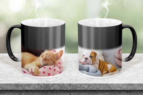 Our heat sensitive mugs are elegantly designed but they’re built to last, with a sturdy ceramic core and a long-lasting print of your photo. To make sure your custom magic mug gives you many years of pleasure, we recommend washing by hand to protect the thermal coating.
