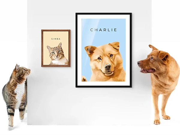 Keep memories close: Cat and dog portraits lock in special moments using quality artistic renderings permanently.