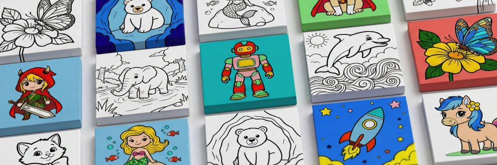 No app, no sign-up, no tools. Pick a design, color it in the browser, and we'll handle the rest - printed and shipped in days.